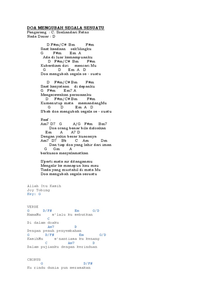 Doa Mengubah Segala Sesuatu Lirik Dan Chord